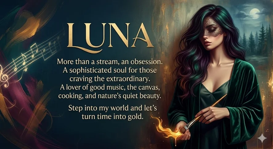 I am Luna and I don`t just offer a stream, I offer an obsession. I am a sophisticated soul for the men who have seen it all but still crave something extraordinary. I am not here for the crowd, I`m here for the ones who appreciate a masterpiece. If u demand the best, you`ve found your destination.